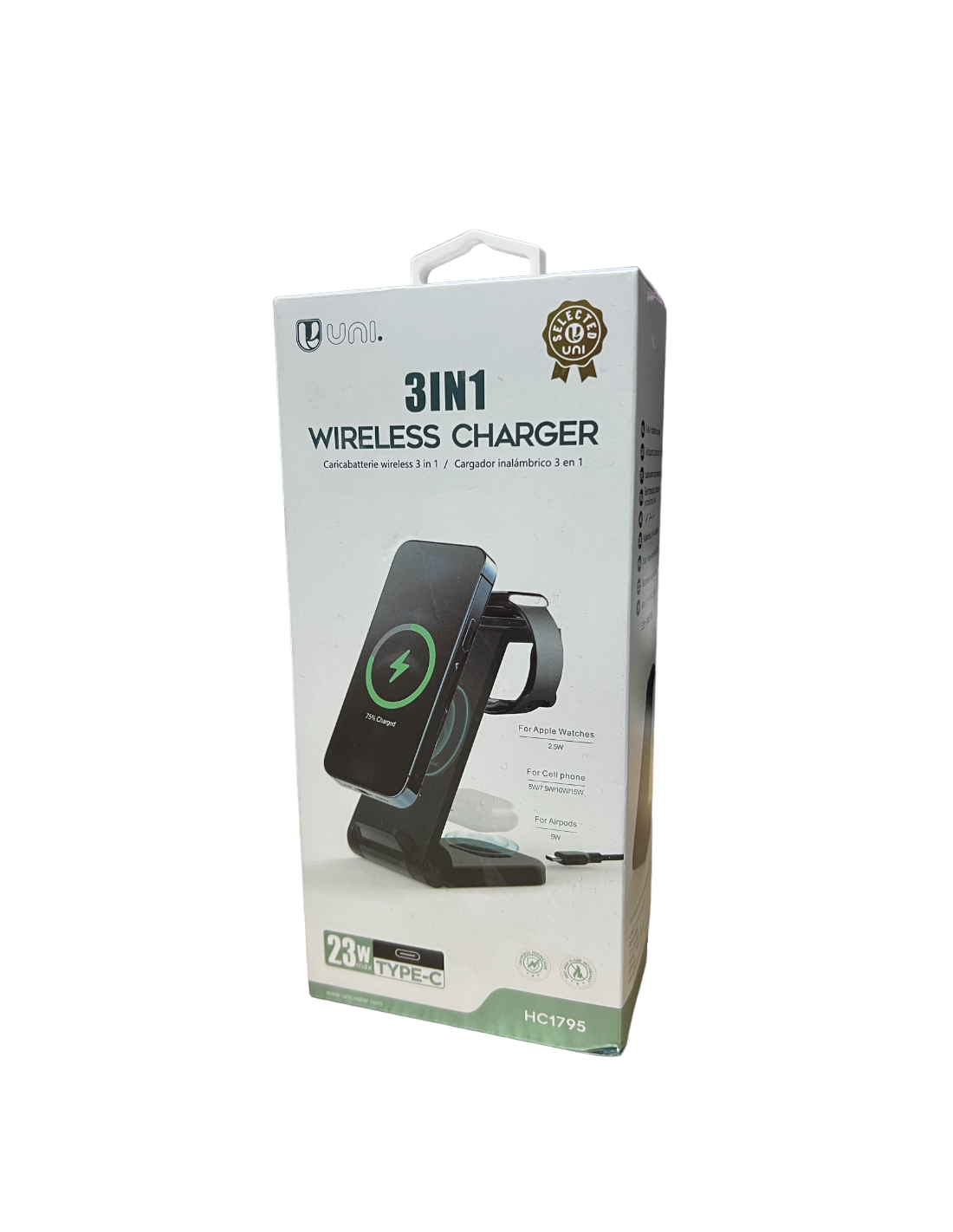 Base de Carga Inalámbrica 3 en 1 Negra Uni HC1795